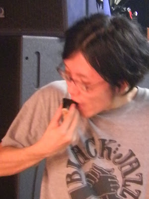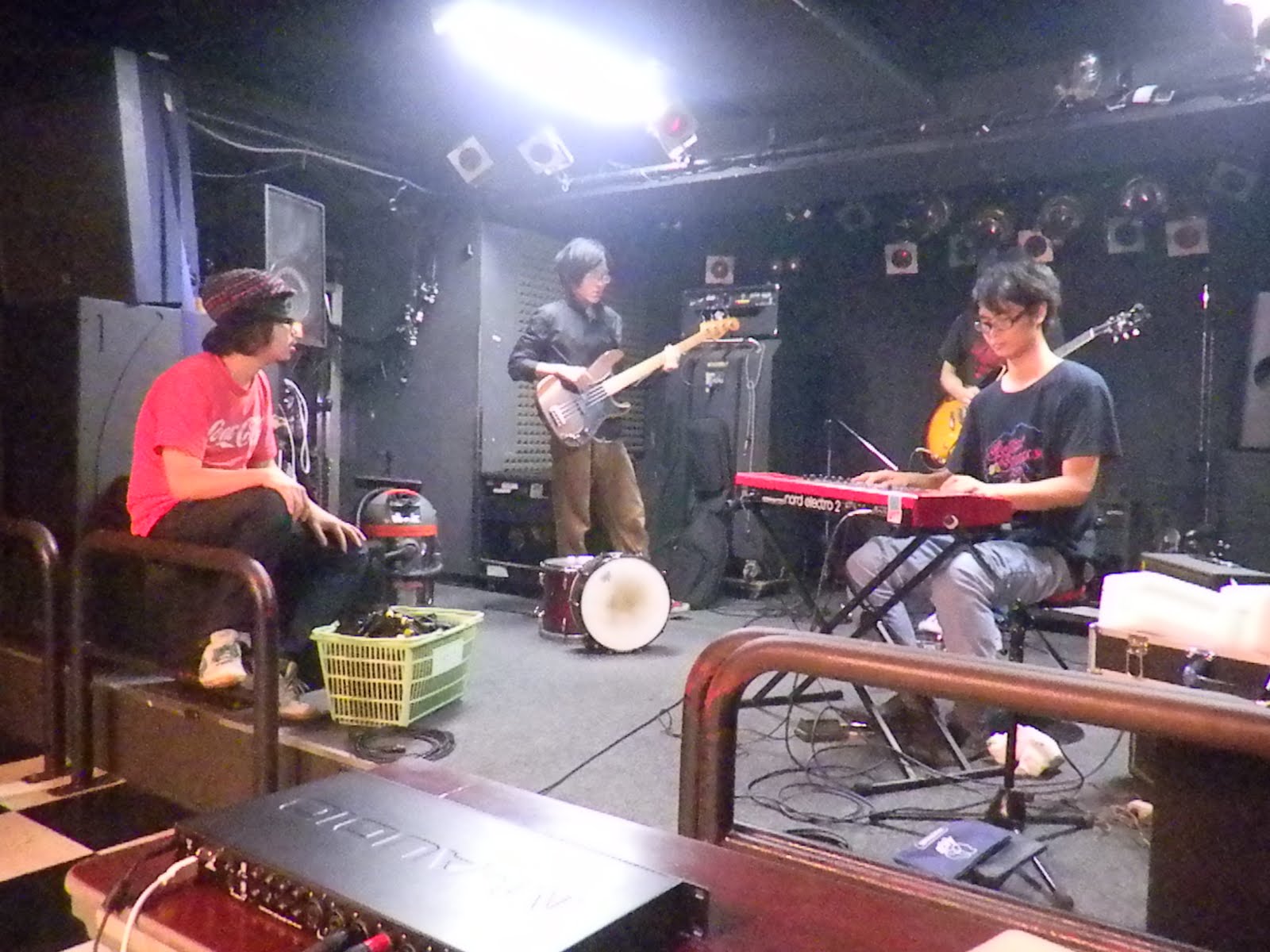 リズム録りで暑い暑いと言ってパンツ一枚になるドラムとパーカッション。予々ゲイ疑惑のあったゲンちゃんはこないだ実際にゲイバーに行ったところ、改めて自分はゲイではなかったことを再認識したそうです。モテまくったらしい