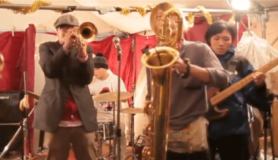 更新サボってるあいだ何をしてたって、メンバーのマコイチさんとゲンちゃん、あと僕とジャズ研の人とかでこの在日ファンクのPVのセットを作っていました。