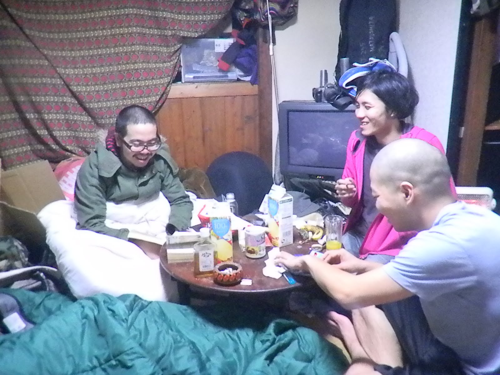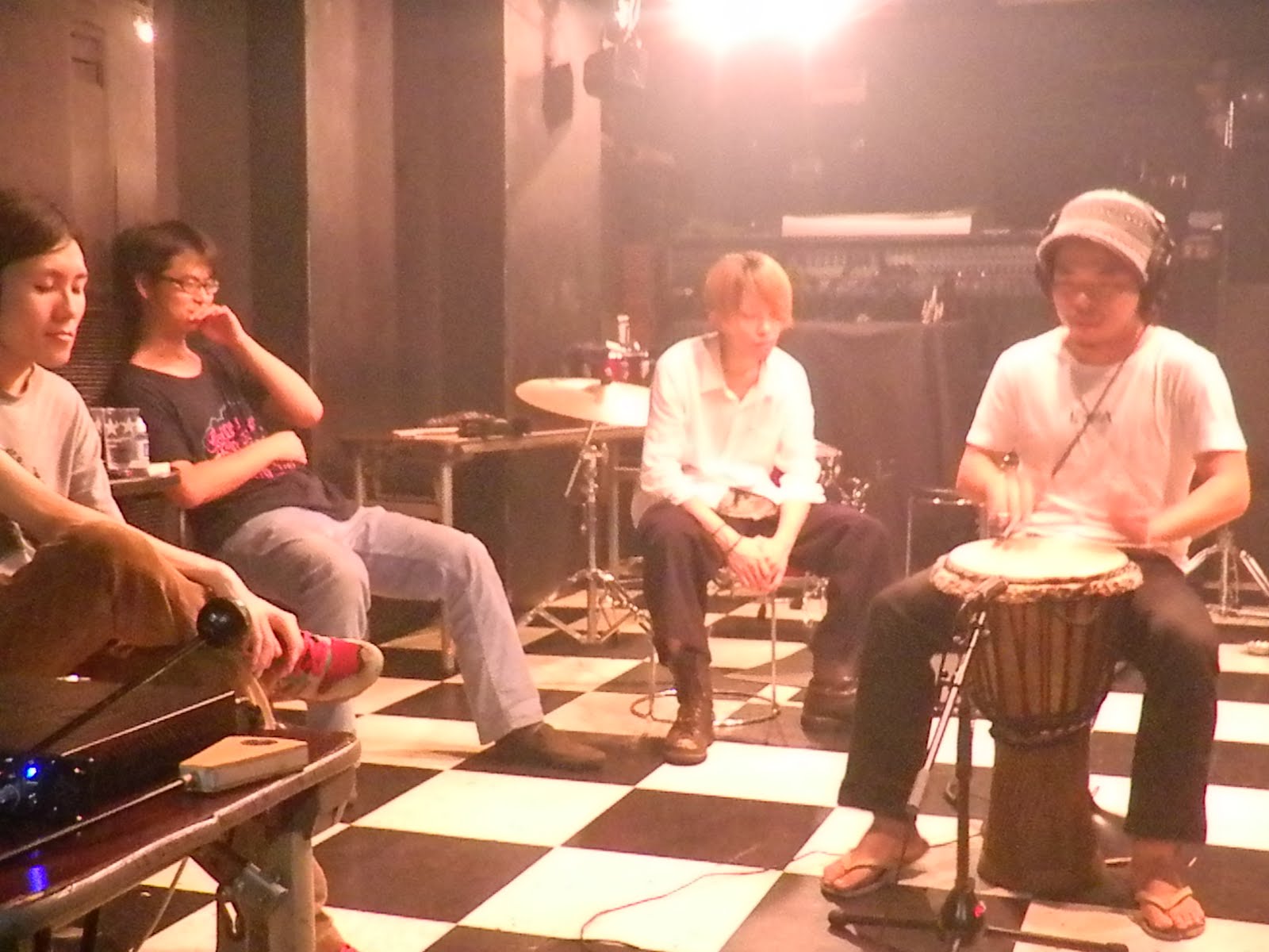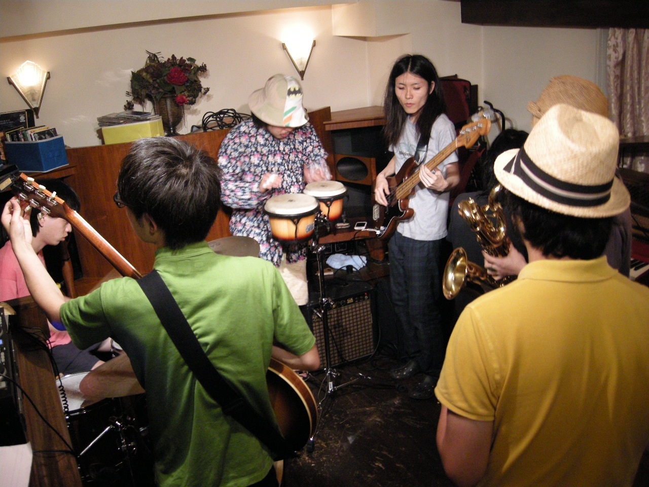 そんでこのあとはもう色々なパーカッションを重ねに重ねました。皆に見守られながらシェイカーやらを演奏する様はなんか深夜独特のテンションもあいまって笑いをこらえるのに必死でしたが、こうして見てもやっぱり変な人です