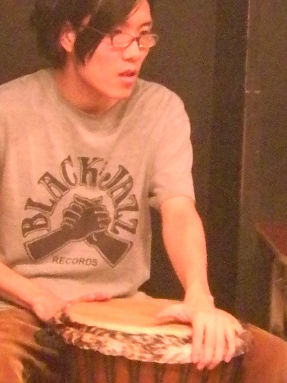 ジャンベを叩くナガオカ