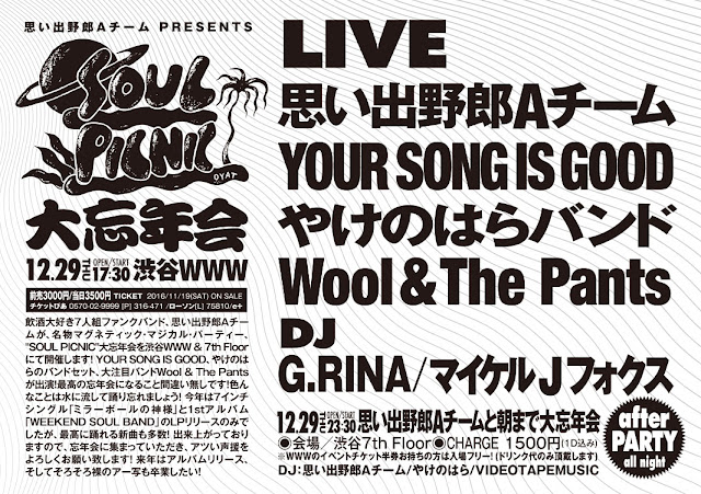前売りチケットは完売致しました。ご購入ありがとうございました。当日券のお問い合わせを多数頂いており、当日はUNIT階下のSALOONを連動でオープンし、当日券を若干枚数販売することになりました。当日券は16時より販売致します。